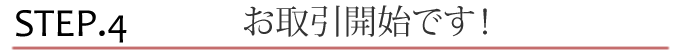 お客様とご契約書を交わしたら取引開始となります。 その他アフターフォローにつきましてもご契約時の条件に遵守したします。